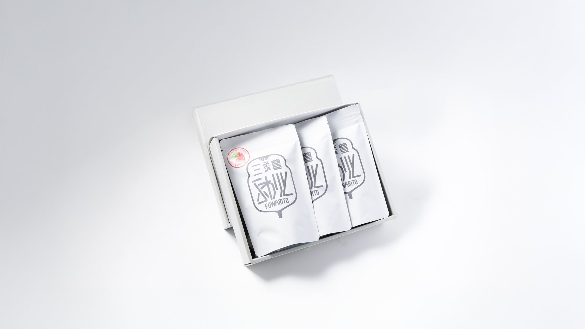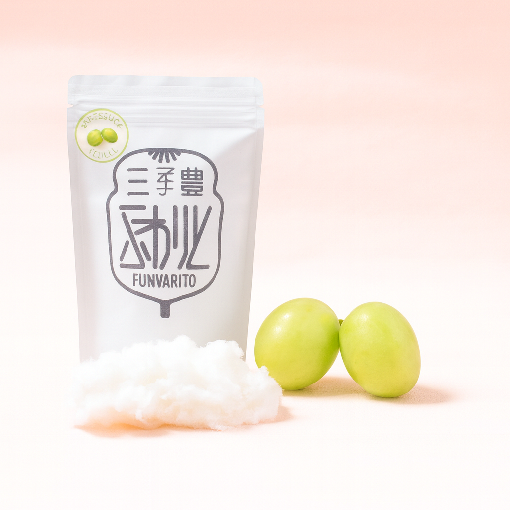 「三豊ふわりと」スタンダードパックは、チャック付きの容器にわたあめ1個をまるごと閉じ込めた、定番スタイルの商品です。